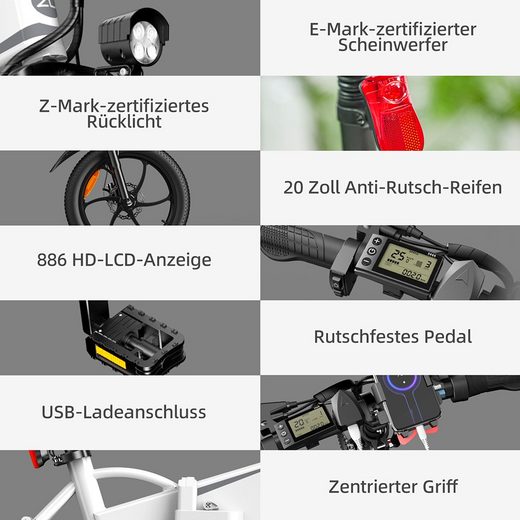 • Komfortables Fahren: E-Bike verfügt über einen Rahmen mit geringem Schritt, der den Rahmen stabil und stabil macht. Verbesserte stoßdämpfende Vorderradgabel.