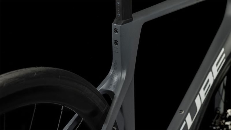 Ab einer bestimmten Geschwindigkeit ist es nicht mehr am Fahrer, ob noch ein paar Millisekunden schneller drin sind, sondern am Bike. Deshalb hat CUBE sich bei der Entwicklung des Agree C:62 von ihren High-End-Rennrad- und Zeitfahr-Rahmen inspirieren lassen. Das Ergebnis ist ebenso aerodynamisch wie ästhetisch ansprechend – ein Allround-Chassis aus Carbon, das CUBE zugunsten von wenig Gesamtgewicht und hohem Fahrkomfort mit schlanken Sitzstreben und durchdacht geformten Rohrsätzen feinabgestimmt hat. Außerdem sind die Schalt- und Bremszüge semi-integriert, was das Handling optimiert und den Wartungsaufwand reduziert. Optional lässt sich eine Rahmenbox montieren, in der Energieriegel oder Werkzeug Platz finden, falls die Tour doch mal länger dauert als geplant.