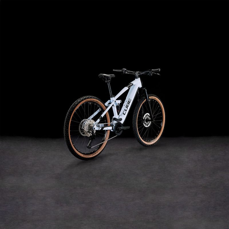 Außerdem hat Cube dem Bike hydraulische 4-Kolben Scheibenbremsen mit größeren Rotoren am Vorder- und Hinterrad spendiert, welche die griffigen 2.6 Zoll Schwalbe Reifen kontrolliert und sicher verzögern. Und dank RockShox Komplettfederung kleben Letztere förmlich auf dem Trail. Fazit: Wer Trail-Riding liebt, wird begeistert sein!