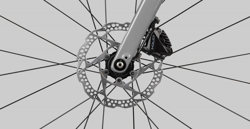 Mit dem Mavic Allroad Laufradsatz in Kombination mit der vielseitigen wie schnellen 40 Millimeter Terra Speed ProTection Bereifung von Continental ist guter Grip auf jedem Terrain gegeben und kleine Unebenheiten werden easy ausgebügelt. Das Modell kommt sportlich und puristisch ohne die üblichen Pendler-Anbauteile wie Gepäckträger und Schutzbleche daher, nichtsdestotrotz bieten Rahmen und Gabel ausreichend Schraubpunkte für die unterschiedlichen Komponenten und darüber hinaus noch zusätzliche Kontaktpunkte für Werkzeug, Frontträger oder ähnliches. Für epische Touren montieren wir das Gravel-must-have im Schaltungsbereich an den schicken, grauen Rahmen: Shimano’s GRX Gruppe in der hochwertigsten 11-fach Variante und mit nur einem Kettenblatt an der Front. 40 Zähne vorne und eine Kassette mit 11-42 Zähnen gewährleisten eine enorm große Bandbreite an Übersetzungen, die Dich sowohl beim Ritt über Asphalt als auch auf dem steilen Trailanstieg immer im runden Tritt halten. Der spezielle LEVELNINE Gravel-Lenker mit Flare erlaubt Dir mehrere Griffmöglichkeiten, um Deinen Fahrstil auch dem Gelände anpassen zu können. Damit Du auch nach Stunden im Sattel nicht über eben diesen nachdenken musst, spezifizieren wir den kultigen SDG Bel Air V3. REGARD 10.0 rockt!