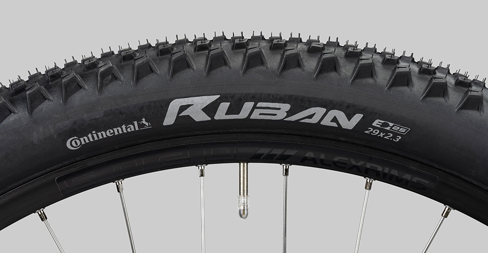 | Reifen: | Continental Ruban, PureGrip Compound, E25, wired, 29″ x 2.30″ |