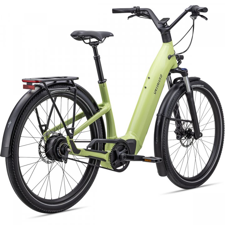 Ausgestattet mit Specialized DRYTECH Schutzblechen, LED Front- und Rücklicht und HD Gepäckträger mit bis zu 27kg Zulademöglichkeit. Der Gepäckträger ist kompatibel mit Kindersitzen und passenden Anhängern.