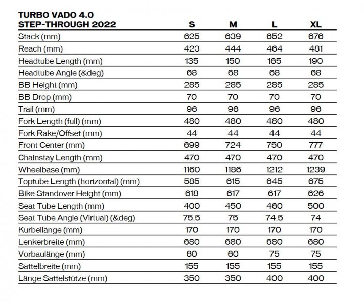 DATENBLATT FÜR SPECIALIZED TURBO VADO 4.0 – STEP-THROUGH CITY E-BIKE – 2022 – CAST BLACK / SILVER REFLECTIVE